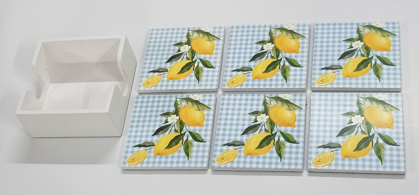 Bring a refreshing pop of color to your table with our Blue Checks Lemon Coasters. Featuring a playful blend of classic blue checks and bright lemon motifs, these coasters add a cheerful charm to everyday dining and entertaining. Crafted to protect your surfaces from spills and heat marks, they balance function with style effortlessly. Perfect for summer gatherings, tea-time setups, or simply brightening up your coffee table.