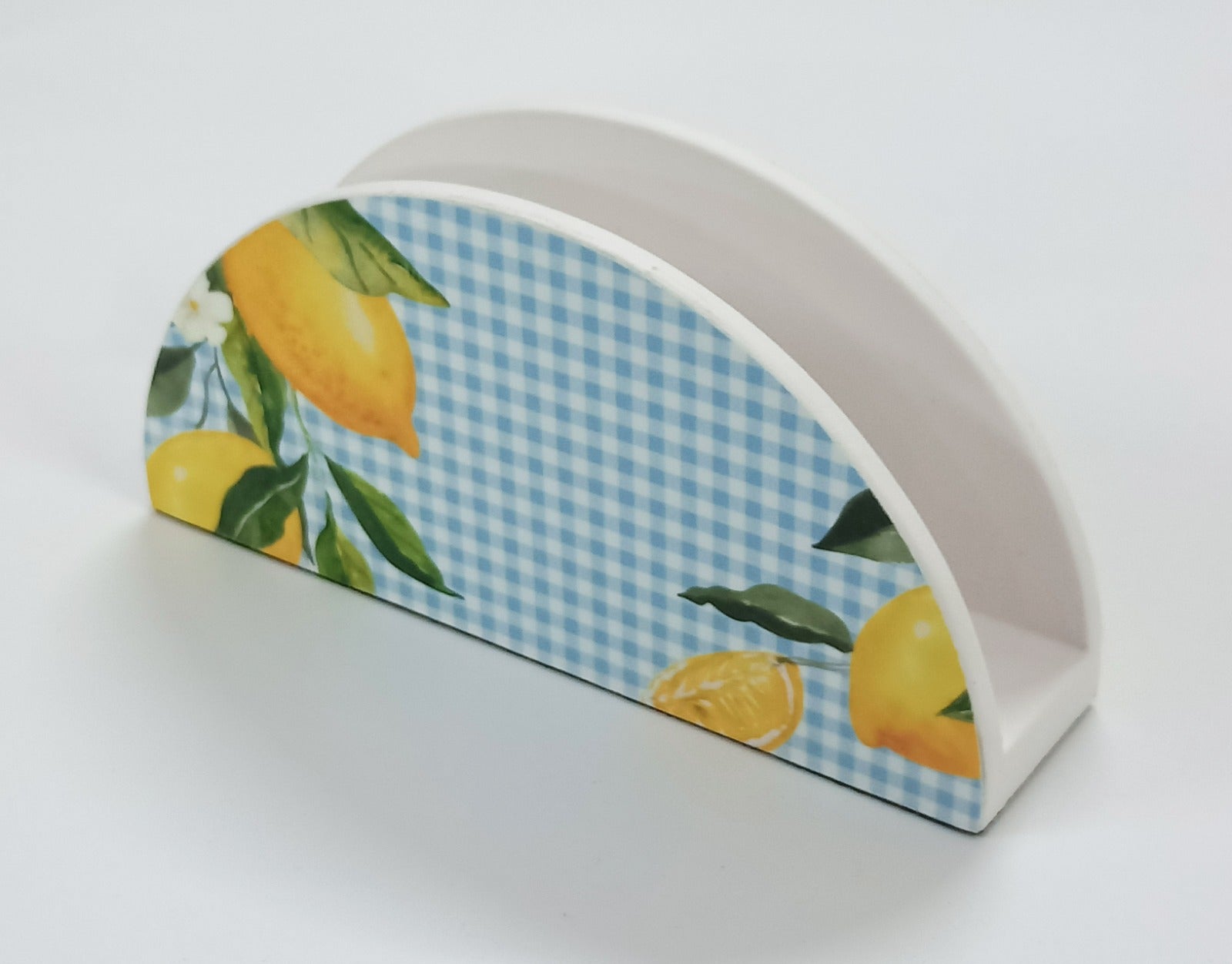Elevate your tablescape with the effortless charm of our Tuscan Citrus Napkin holder. Inspired by timeless patterns, its crisp blue check design brings a fresh yet classic touch to your dining experience. Both practical and stylish, it keeps your napkins neatly arranged while doubling as a statement accent for casual meals or elegant gatherings. A perfect blend of function and décor, it seamlessly complements a variety of table settings.